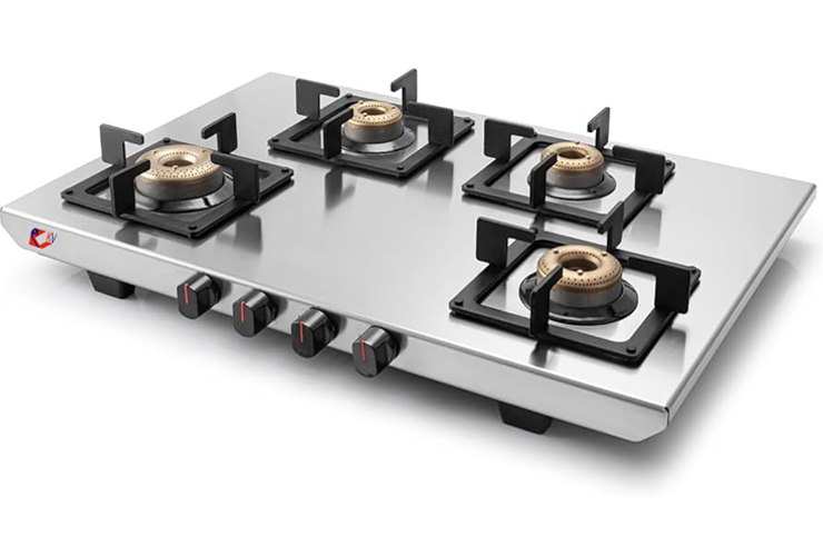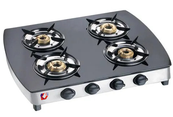 Stainless Steel Body Frame Brass Plated Burner Gas Saving Technology Manual Ignition Toughened Glass Top Sturdy Pan Support